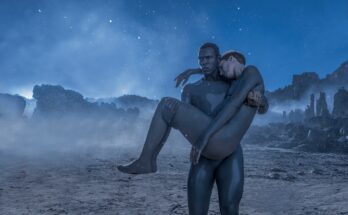 Abubakar Salim and Selina Jones in Aaron Guzikowski's HBO Max science-fiction drama series, Raised by Wolves, Season 2 finale